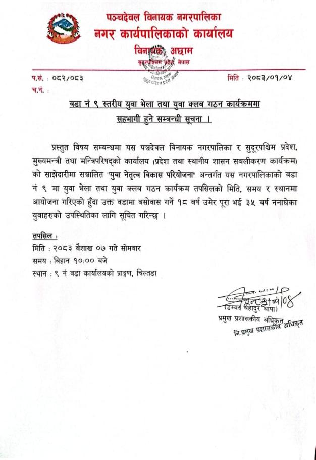 युवा भेला तथा युवा भेला गठन कार्यक्रममा सहभागी हुने सम्बन्धी सूचना !