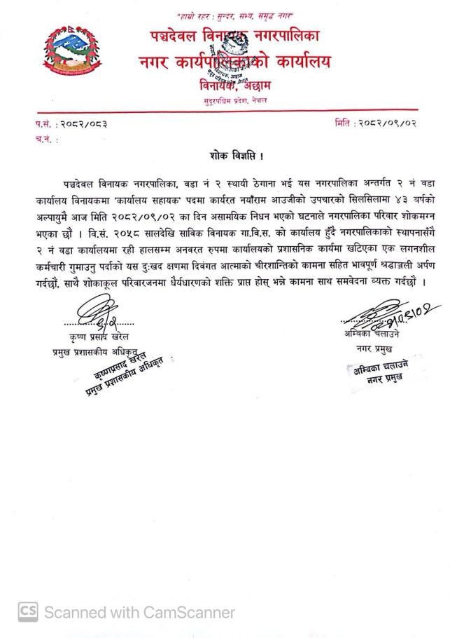 शाेक विज्ञप्ति !