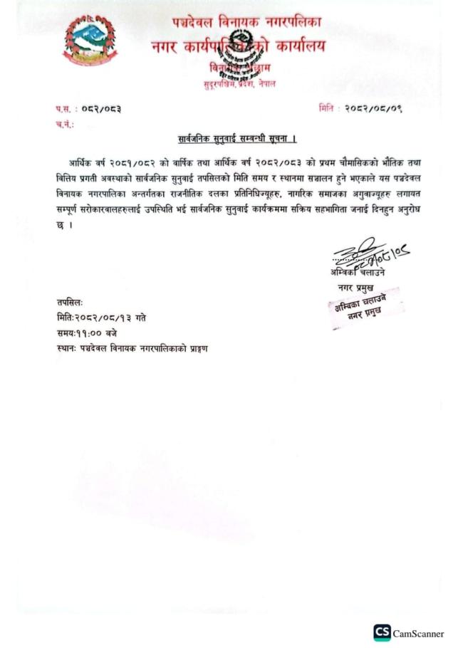 सार्वजनिक सुनुवाइ सम्बन्धी सूचना !