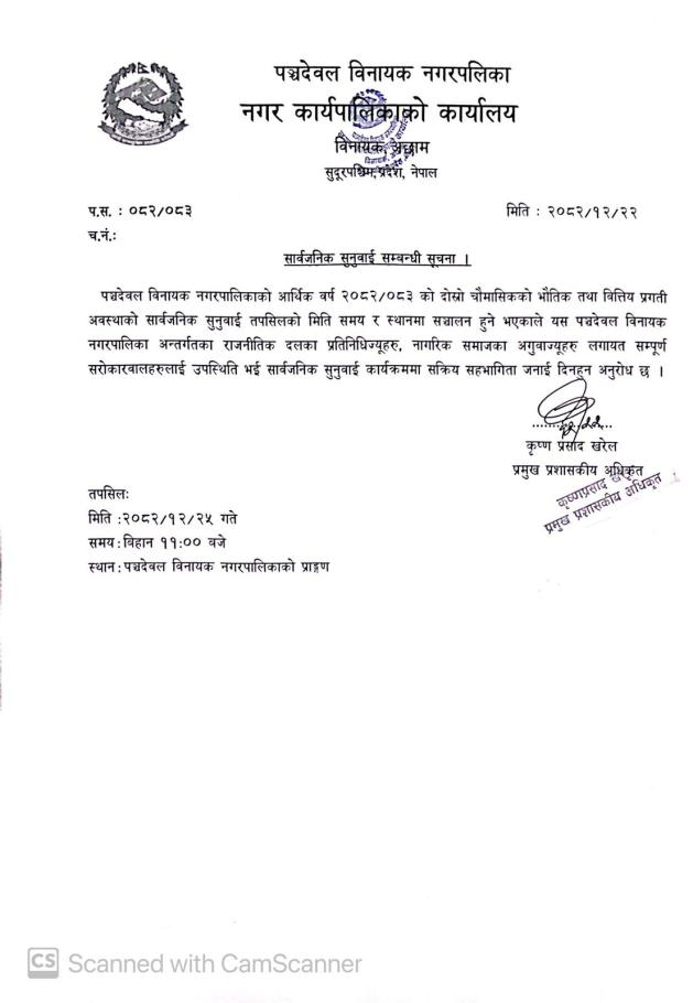 सार्वजनिक सुनुवाइ सम्बन्धी सूचना !