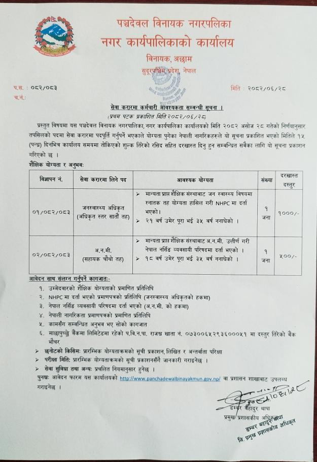 सेवा करारमा कर्मचारी आवश्यकता सम्बन्धी सूचना !