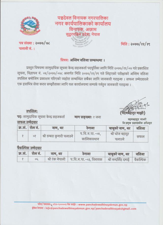 अन्तिम नतिजा सम्बन्धमा ।