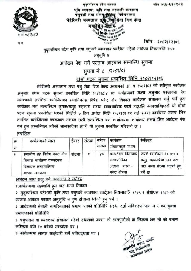 आवेदन पेश गर्ने प्रस्ताव सम्बन्धी सूचना !