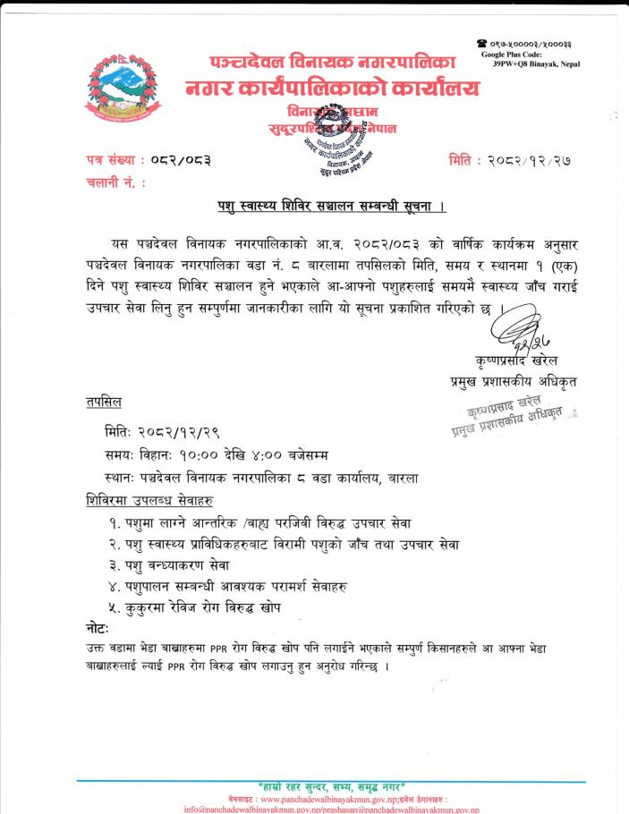 पशु स्वास्थ्य शिविर सञ्चालन सम्बन्धी सूचना !