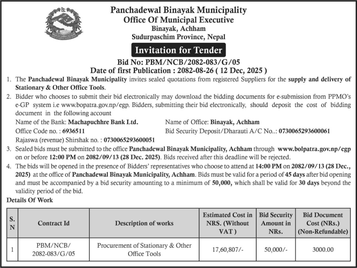 बोलपत्र आह्वान सम्बन्धी सूचना !