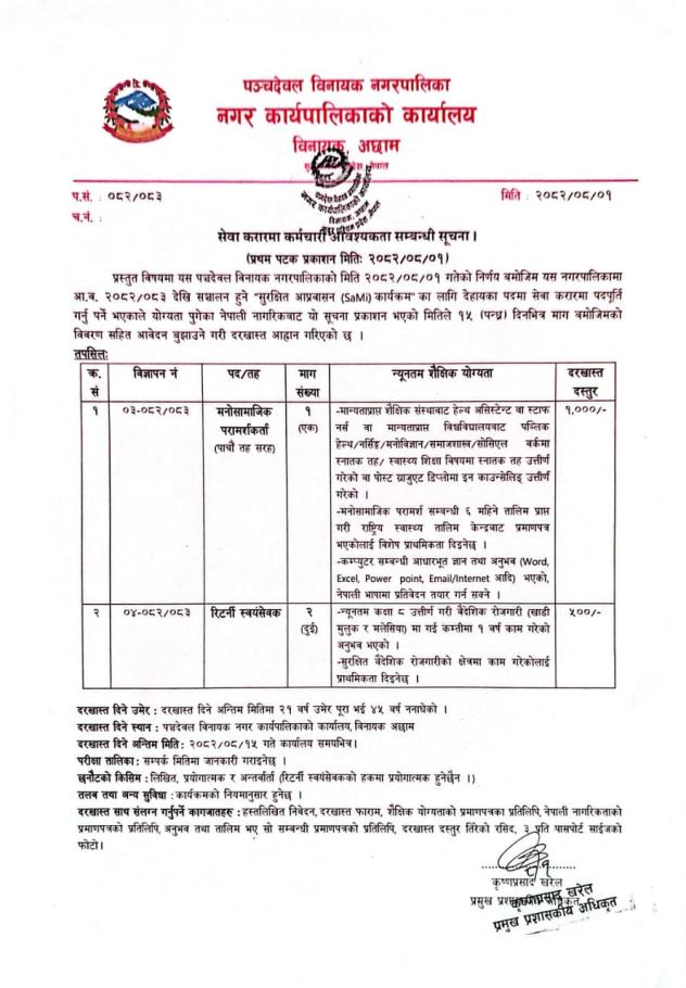 सेवा करारमा कर्मचारी आवश्यकता सम्बन्धी सूचना !